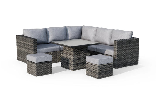 Lima 7 Seater Rattan Grey Garden Sofa Set With Sools and Up-Down Table