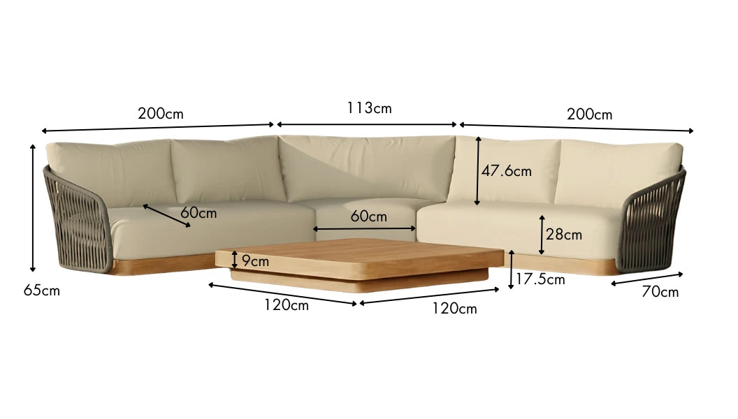 - Dimensions: 2-seater sofas: L.200 x D.70 x H.65cm | 1-seater corner seat: L.113 x D.72.6 x H.65cm
