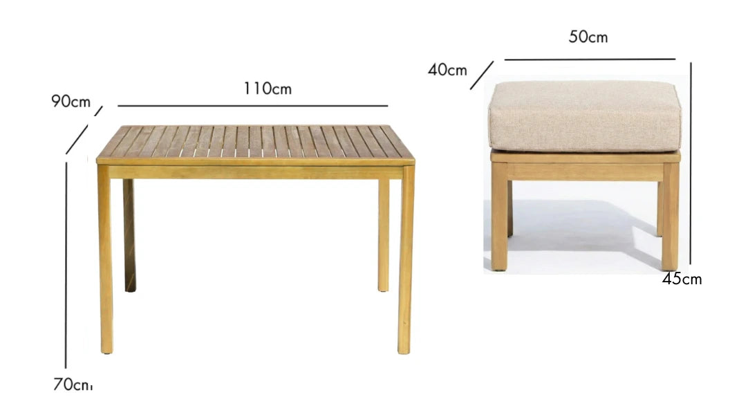 - Single stool: L.50 x W.40 x H.31cm