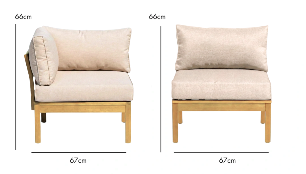 - Corner seats: L.67 x W.67 x H.66cm