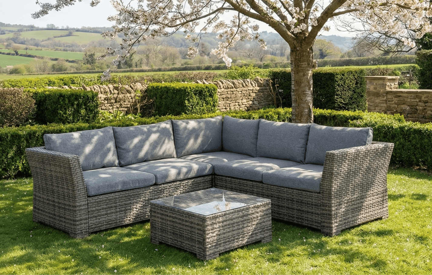 Chesterton Grey 5 Seater Corner Rattan Garden Sofa Lounge Set and Cover Bundle