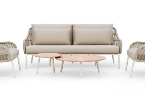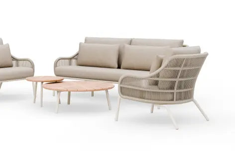 Create your outdoor oasis with this expertly crafted 4-seater set from our Cora collection. A handwoven construction creates a natural and organic look that's sympathetic to your surroundings, while a set of two coffee tables gives an intimate, nested feel with the practicality to split each element or keep them nested together.