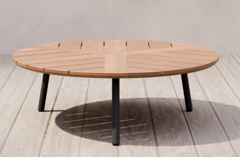 - One large and one small wooden, round, slatted coffee table with robust aluminium legs