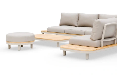 • Materials: Aluminium powder coated frame, eucalyptus, olefin cushions