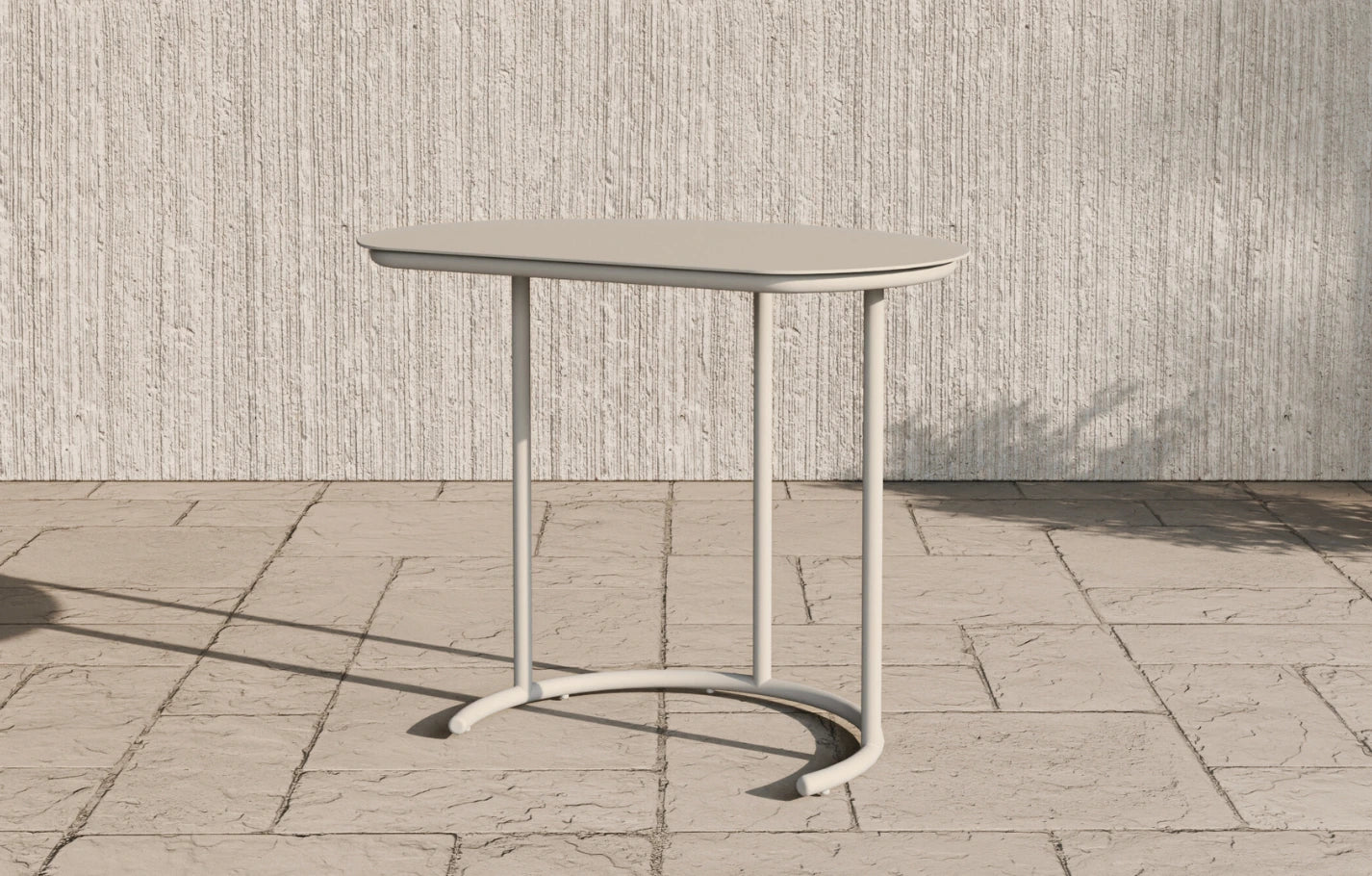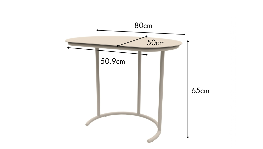 Whether you're working from home or relaxing at the weekend, our Kiki C-Shaped Metal Garden Side Table elevates your time outdoors. Part of our Kiki collection, it features the same sleek sand-coloured finish, crafted from powder coated aluminium. Plus, at 65cm in height, you can position this table in front of you to create an outdoor workspace or one-person table for mealtimes.