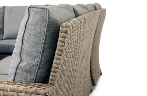 - 6-seater rattan corner sofa featuring grey removable seat and back cushions