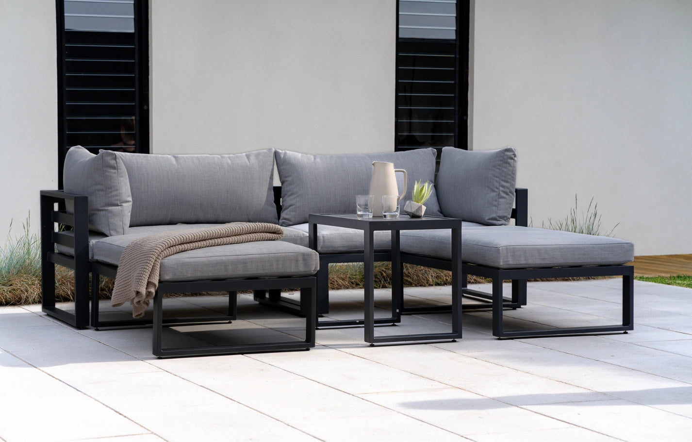 "The furniture itself is fantastic - it arrived ready assembled so it was just a case of getting it out of the box and putting the cushions on. I love that it is modular as it can be moved around to fit different configurations depending on our needs and as it's made of aluminium it is light enough to move with ease but it also includes clips to keep furniture in place and connected if you prefer. It is very comfy and looks fantastic on our patio."