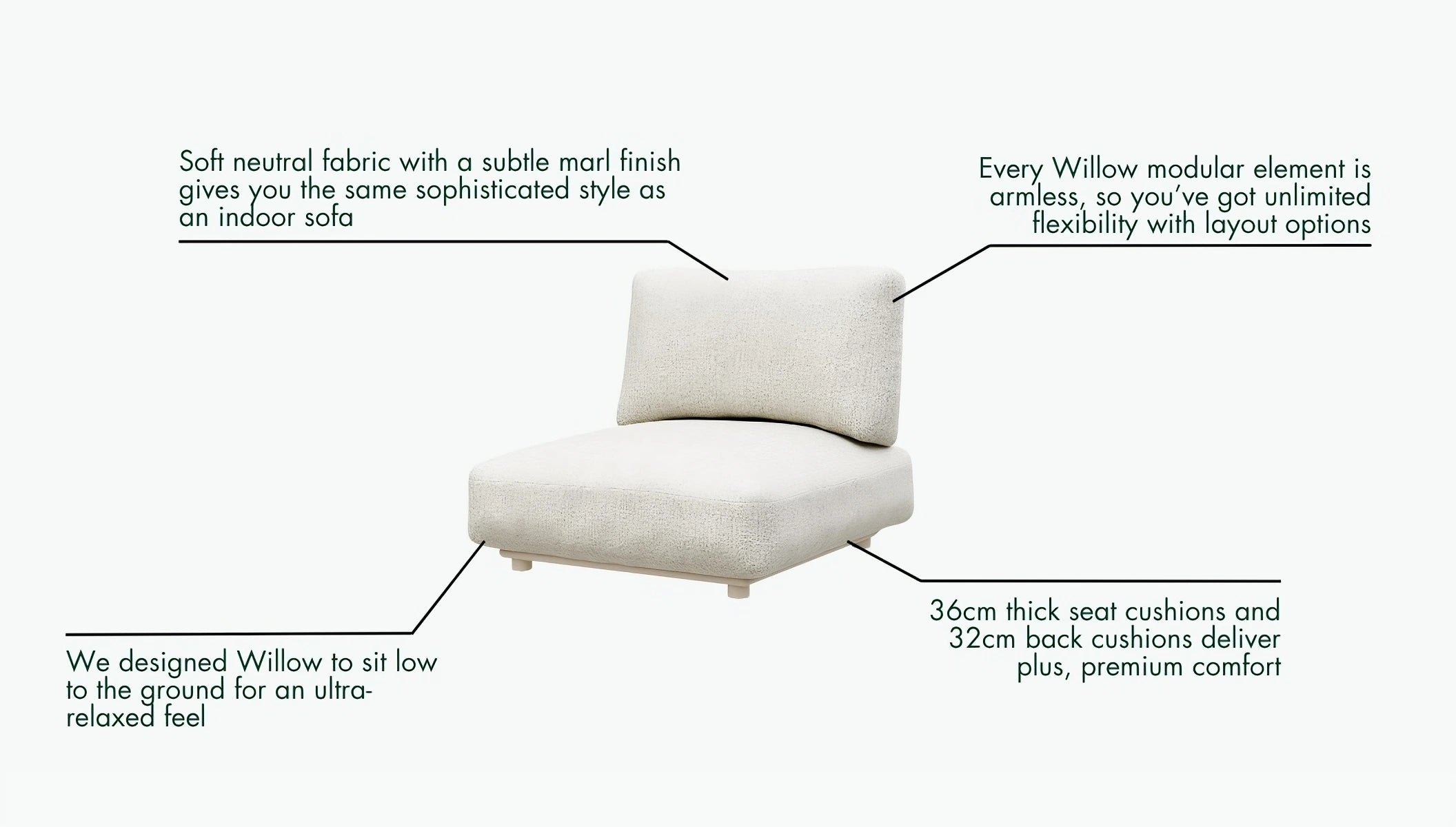Curate your own outdoor oasis with this 1-seater sofa from our Willow modular collection. This generously proportioned sofa gives you spacious comfort from front to back. Plus, ultra-thick cushions give you a premium comfort experience. An armless construction gives you endless possibilities when it comes to configuring your sofa set.